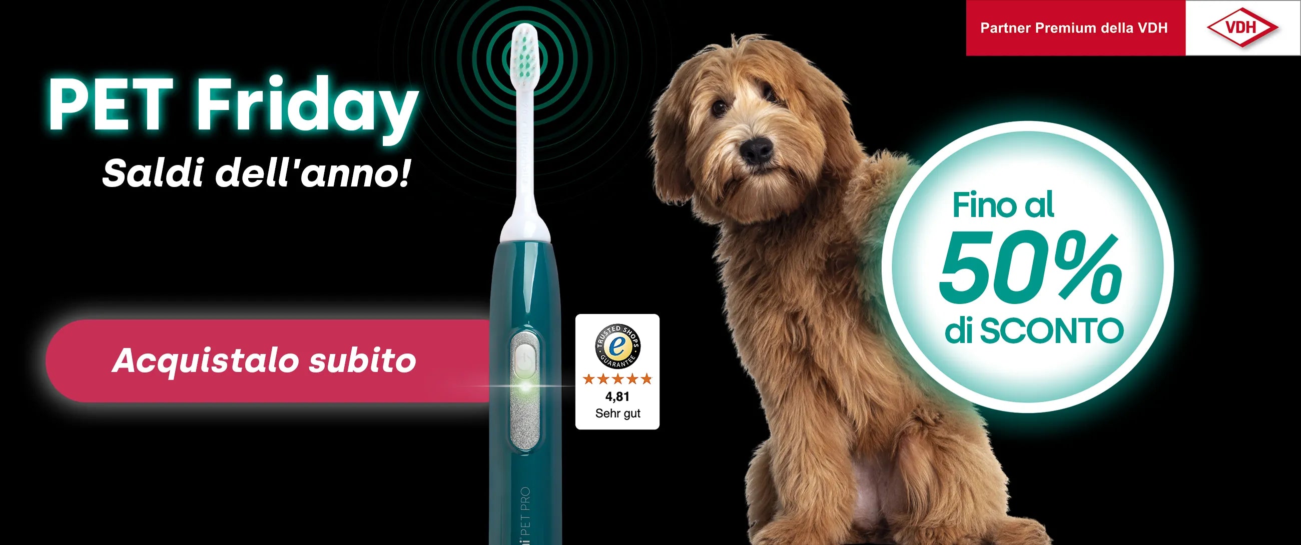 Oltre allo spazzolino a ultrasuoni per animali, il nostro negozio online offre una varietà di altri prodotti per la cura degli animali domestici. Sappiamo che desideri solo il meglio per il tuo animale domestico, ed è per questo che offriamo prodotti accuratamente testati e raccomandati dai veterinari. Dalla cura del pelo alla cura dentale e molto altro ancora. Il nostro obiettivo è migliorare la salute e il benessere del tuo amico a quattro zampe.