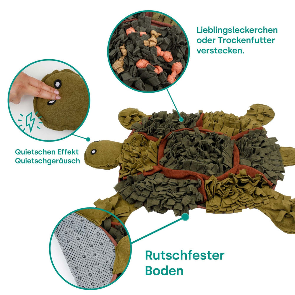 - Einfach zu reinigen: Die emmi-pet Schnüffelmatte Schildkröte ist leicht zu befüllen und zu reinigen.