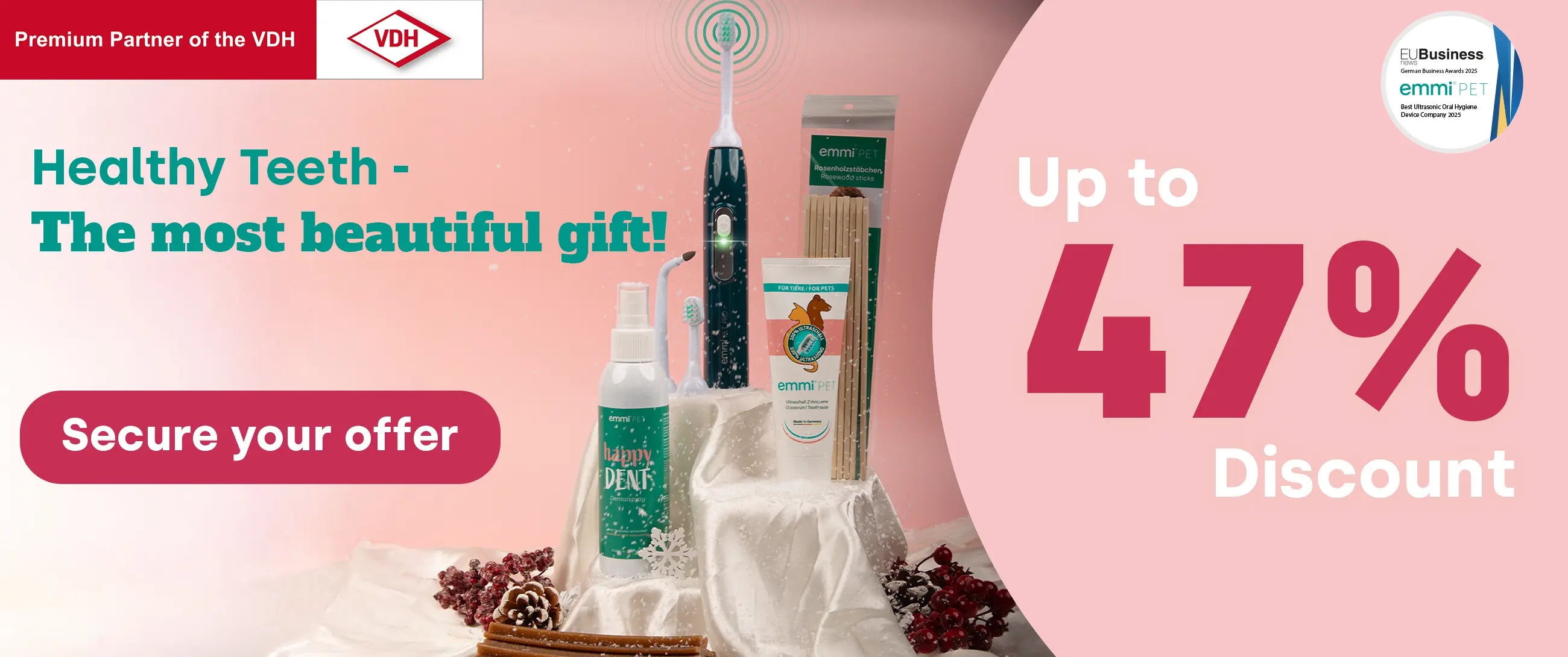 Dental care is an essential part of your pet's general health. Many pet owners are unaware of the effects of poor dental hygiene, which can range from bad breath to gingivitis to serious secondary diseases. With the innovative products from emmi-pet, you can effectively prevent this and ensure the well-being of your pet.