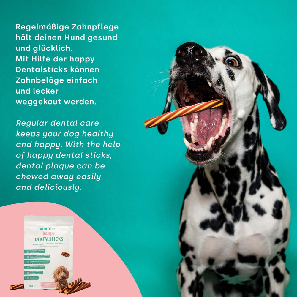 The emmi-pet Teeth Polisher Dental Sticks contribute to your dog's oral health by effectively tackling plaque and tartar, caring for the gums and reducing the formation of new deposits. Our dental sticks for dogs are a natural addition to the toothbrush and perfect for daily use.