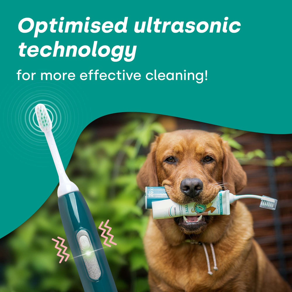 This brush's patented ultrasonic technology operates silently and vibration-free, making it especially appealing to sensitive dogs. Many dogs who are sensitive to the noise and vibration of traditional toothbrushes respond much better to this technology, making oral care a stress-free experience for both of you.