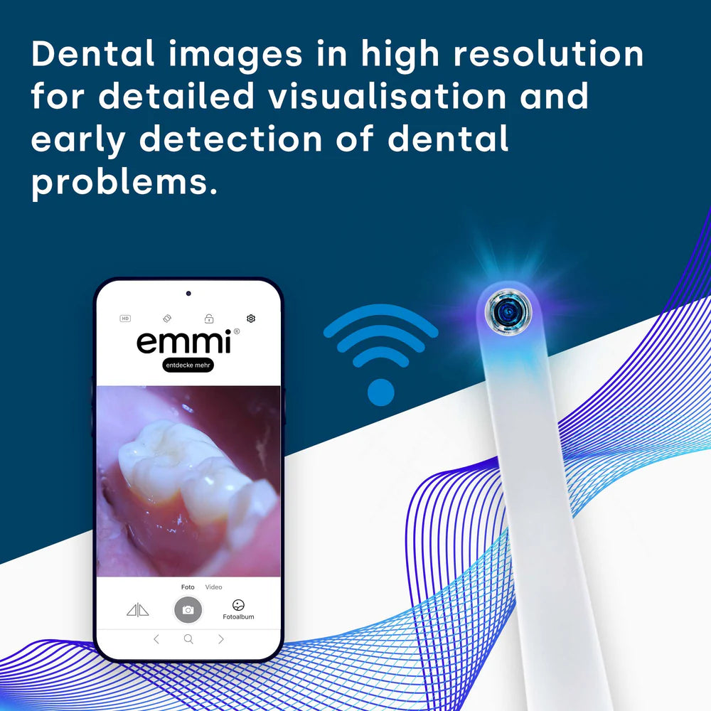 Experience dental care at the highest level: The emmi-dent PlatinumCAM combines the latest ultrasound technology with an integrated dental camera to make hard-to-reach areas in your mouth visible - for even more thorough cleaning and control, conveniently via your smartphone.