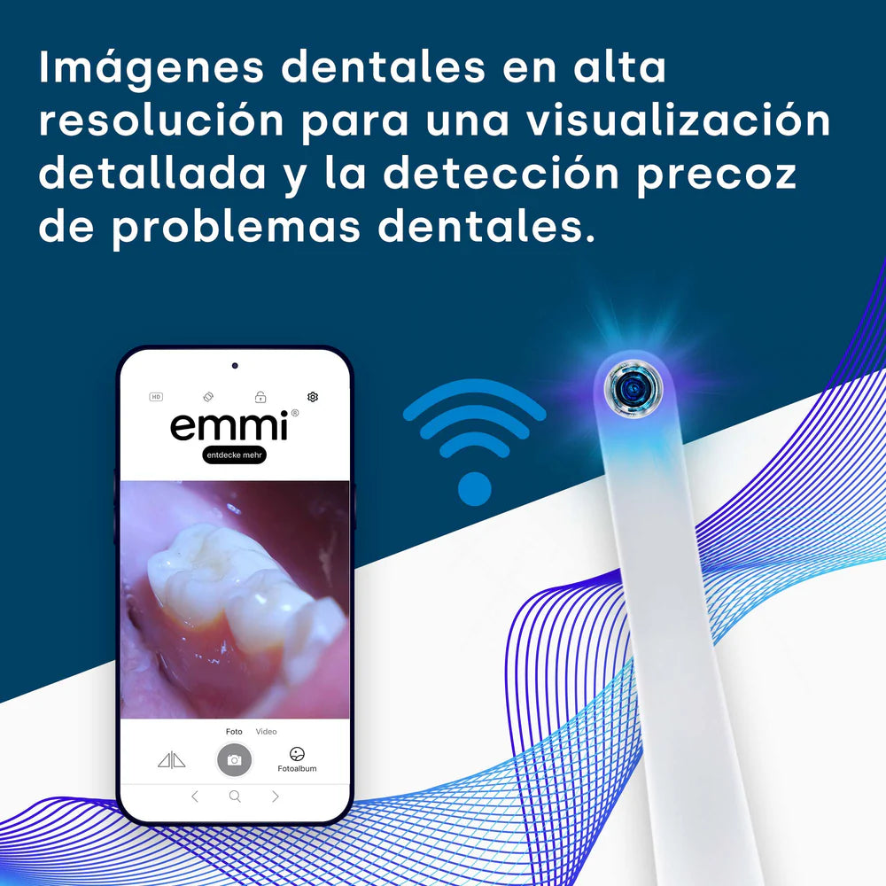 emmi-dent PlatinumCAM aporta una innovación revolucionaria en el cuidado dental con su cámara dental integrada. Esta cámara permite inspeccionar la cavidad bucal en tiempo real. Al conectarte a la aplicación emmi en tu teléfono inteligente o tableta, puedes hacer visibles las áreas difíciles de alcanzar y asegurarte de que tu boca esté limpia hasta el último rincón.