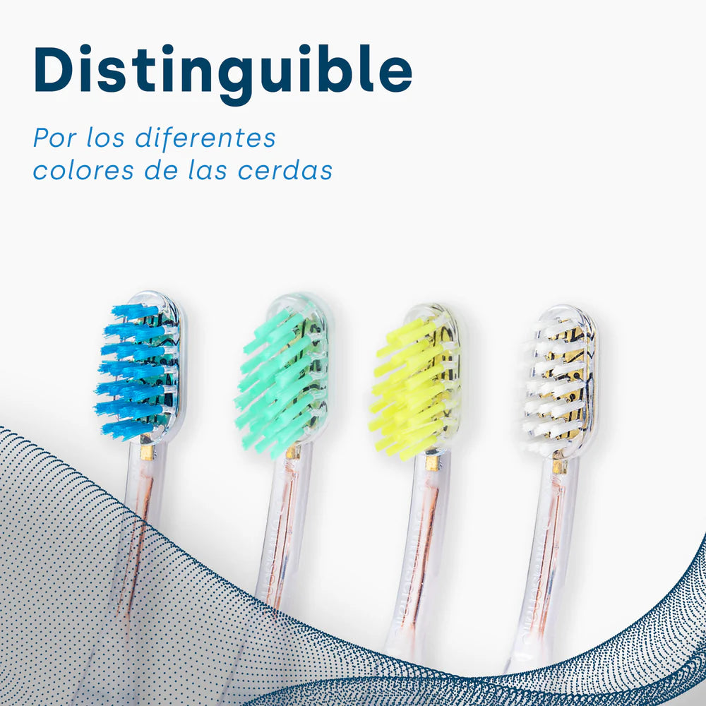 Este cabezales de cepillo Debe reemplazarse después de 3 meses de uso como máximo. Después de este período, la capacidad de las cerdas para transmitir el 100% de los ultrasonidos se debilita y ya no se garantiza una limpieza dental ni una higiene bucal óptimas.