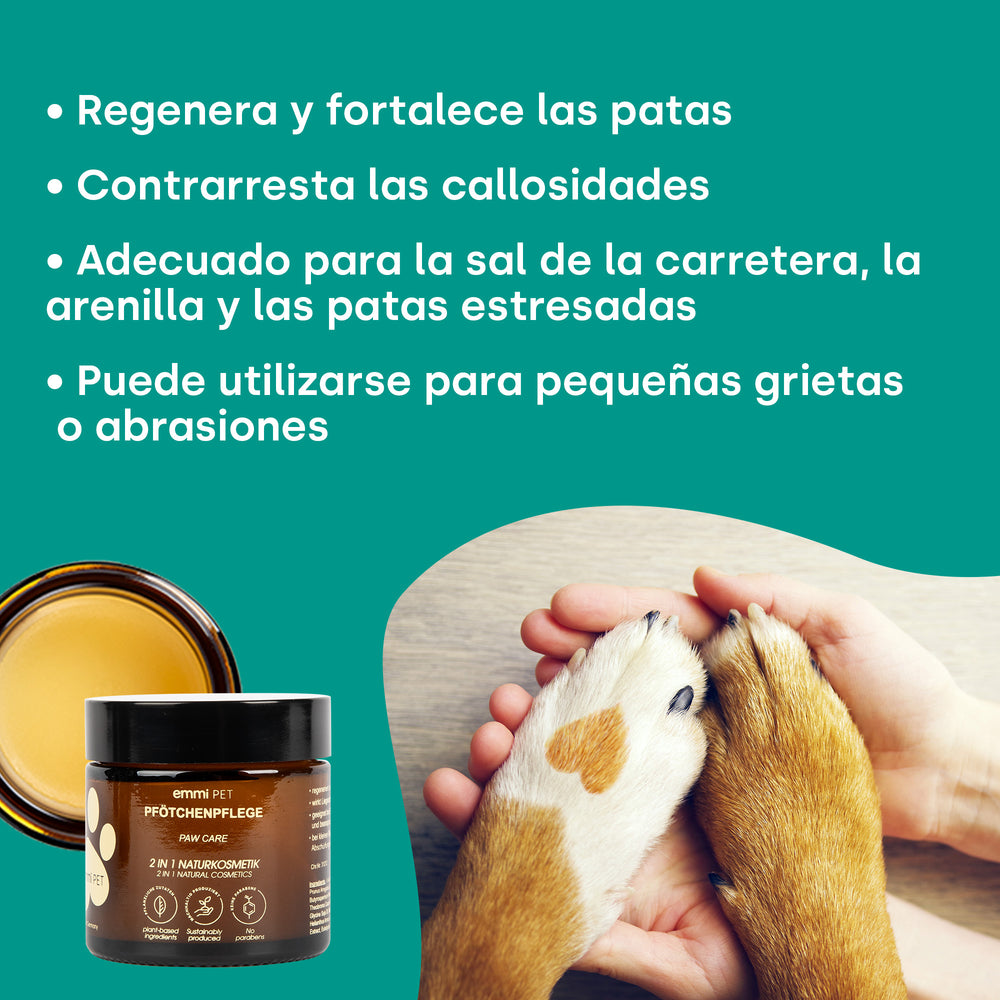Il prodotto 2 in 1 Natural Paw Care protegge i cuscinetti delle zampe stressati e ne favorisce la rigenerazione nelle zone ruvide, secche o con piccole screpolature. Preziosi ingredienti attivi come burro di karité, olio di cocco, arnica e calendula hanno proprietà antinfiammatorie e nutrienti, ideali per l'uso in condizioni di temperatura variabile e su superfici diverse.