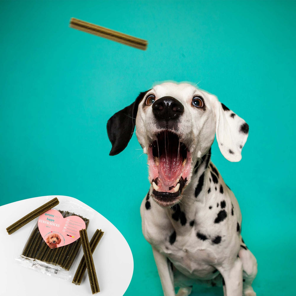 Los palitos dentales de menta son solo uno de los muchos palitos fantásticos de nuestra gama. Descubre ahora nuestros otros Dental Sticks y encuentra la solución ideal para el cuidado dental de tu perro. Ya sea que esté buscando algo para perros con estómagos sensibles o prefiera un sabor especial, ¡con nosotros encontrará lo que busca!