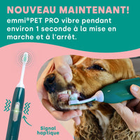 Prova la nuova generazione di spazzolini per cani 100% a ultrasuoni con il nuovo emmi-pet PRO, ora con caratteristiche innovative che rendono la cura dentale del tuo animale domestico ancora più semplice ed efficace. La tecnologia ottimizzata garantisce le massime prestazioni di pulizia, mentre il tuo amico a quattro zampe continua a godere di un'esperienza delicata e senza stress.