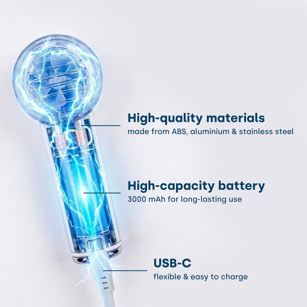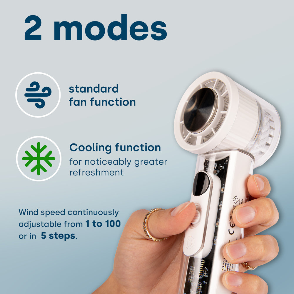 Whether in everyday life, while traveling, or in summer temperatures – this portable fan provides instant cooling exactly when you need it. Its compact design means it's always ready for use and easy to transport.