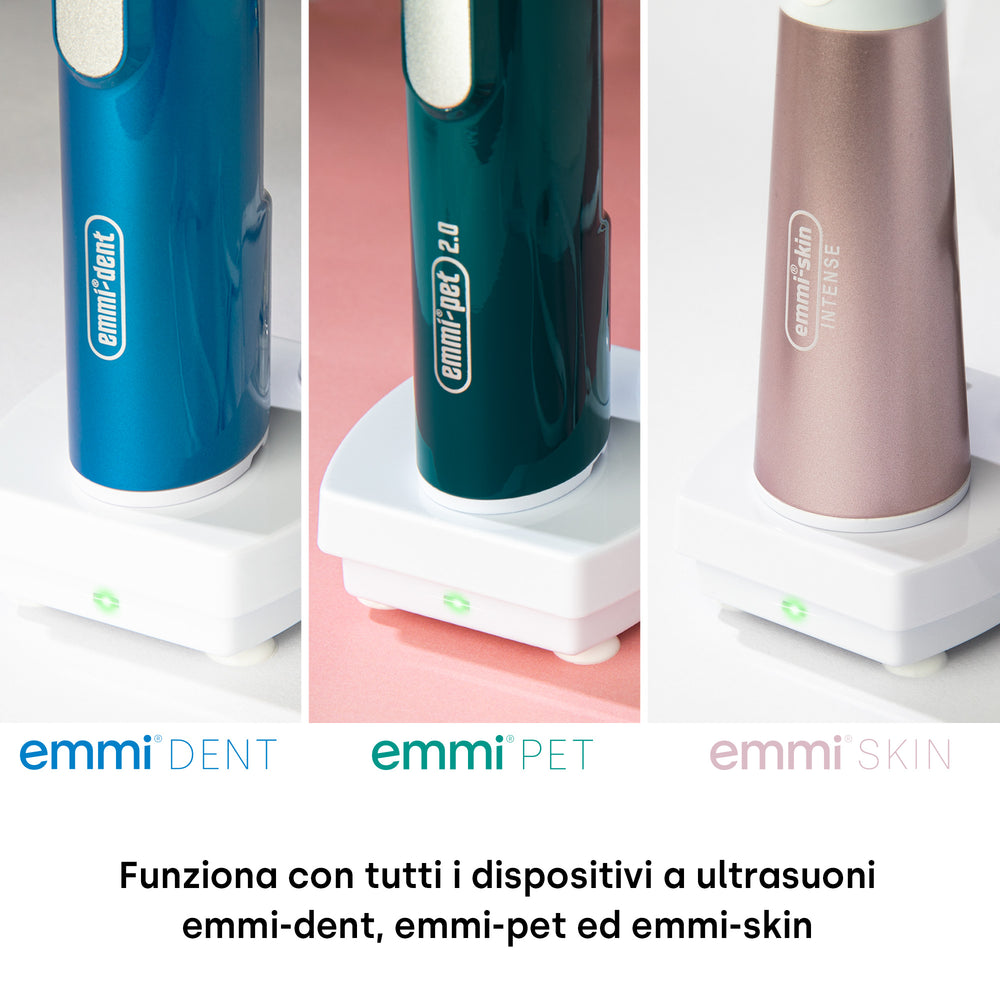 Con il emi 100-240 Stazione di ricarica Ultra puoi creare un secondo "pilastro" per ricaricare i tuoi dispositivi, soprattutto se più persone utilizzano la emmi-dent Apparecchi ad ultrasuoni per la pulizia dei denti e l'igiene orale con ecografia originale al 100%.
