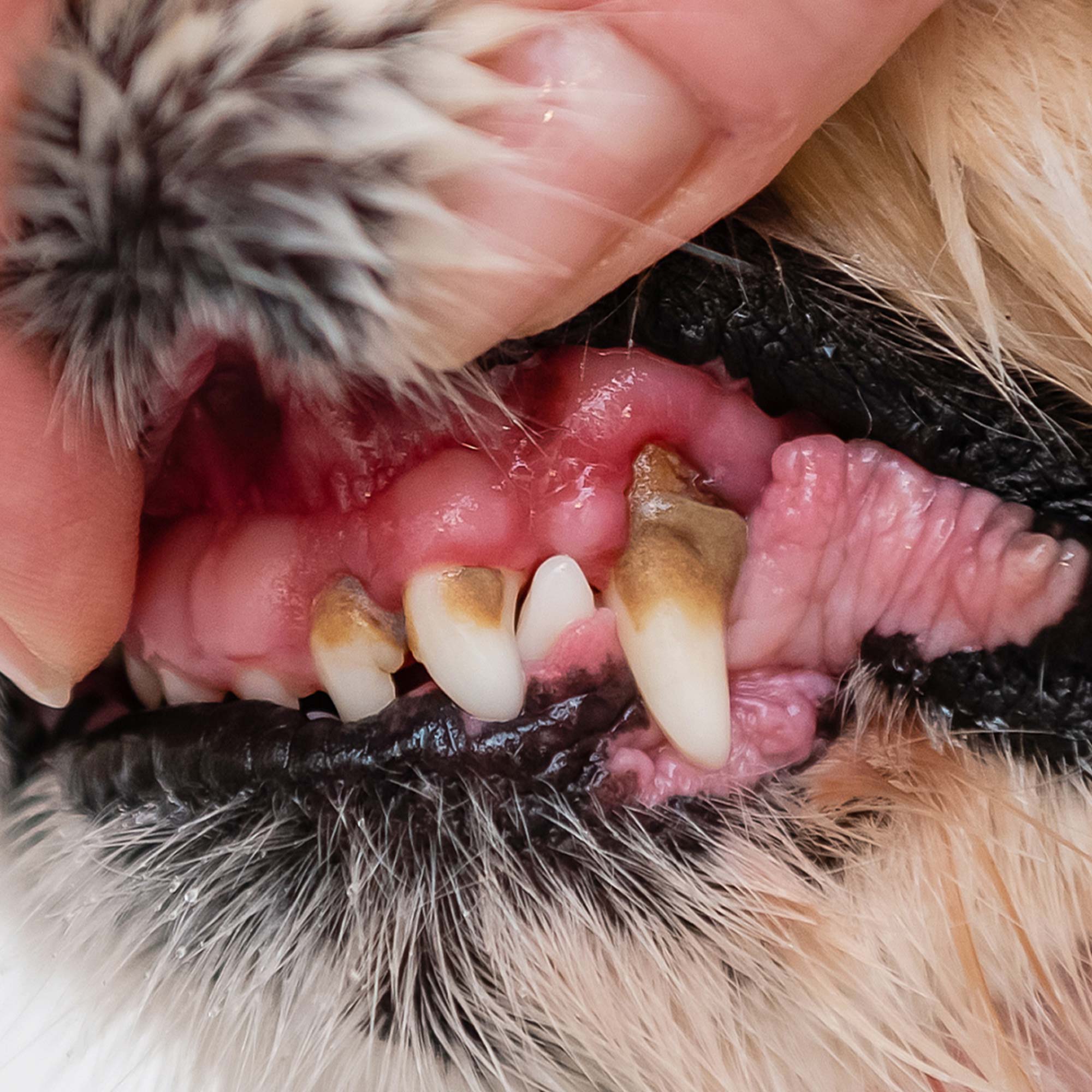 Già dopo pochi giorni senza cure dentistiche, il biofilm si trasforma in placca, che si indurisce rapidamente trasformandosi in tartaro. Ciò provoca infiammazioni dolorose, alito cattivo e un aumento del rischio di malattie come problemi cardiaci o renali. Una scarsa igiene dentale influisce direttamente sulla salute e sulla qualità della vita del tuo cane.