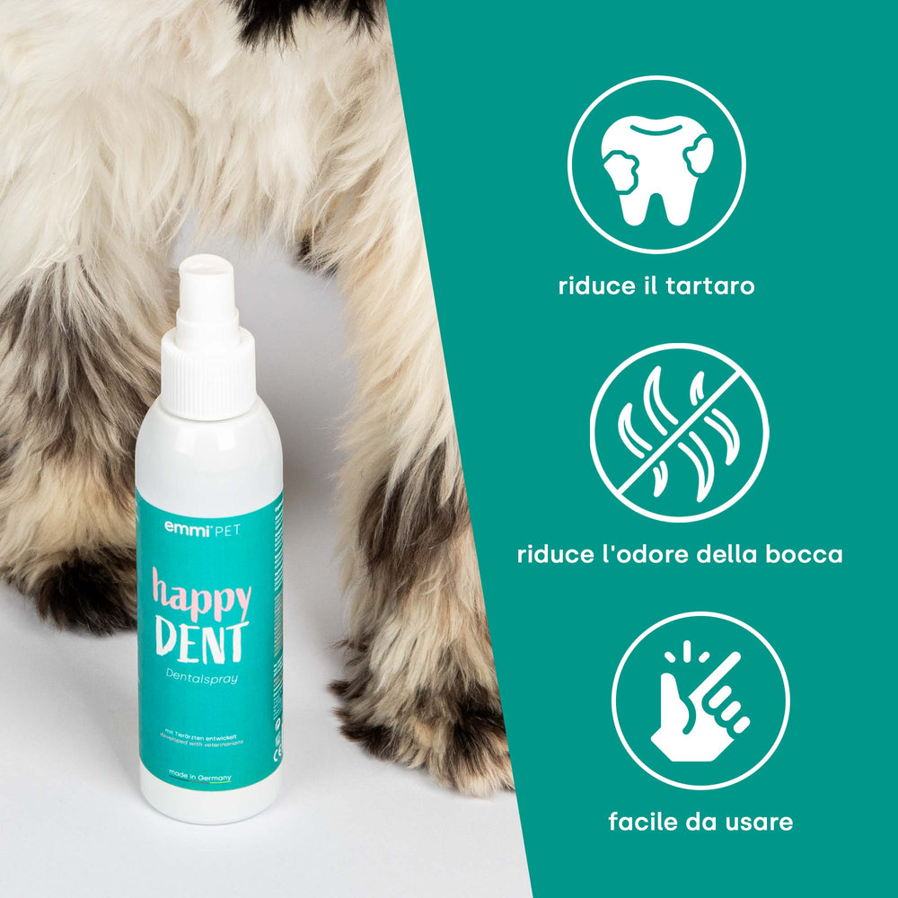 Utilizzando EMMI Pet 2.0, investi nella salute a lungo termine del tuo cane.La buona igiene orale è cruciale per il benessere generale e può aiutare a evitare problemi dentali successivi e rischi per la salute associati.L'Emmi Pet 2.0 offre quindi un modo pratico ed efficace per sostenere la salute orale del tuo cane e dargli una vita sana.