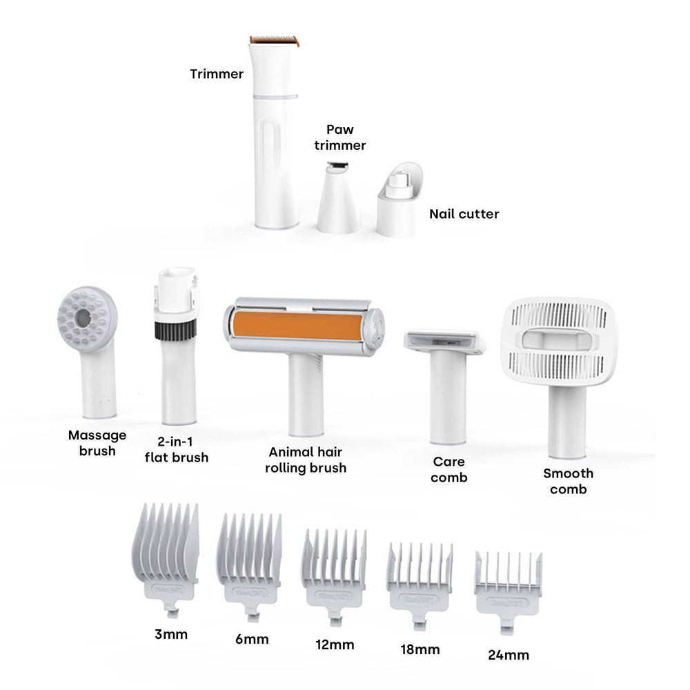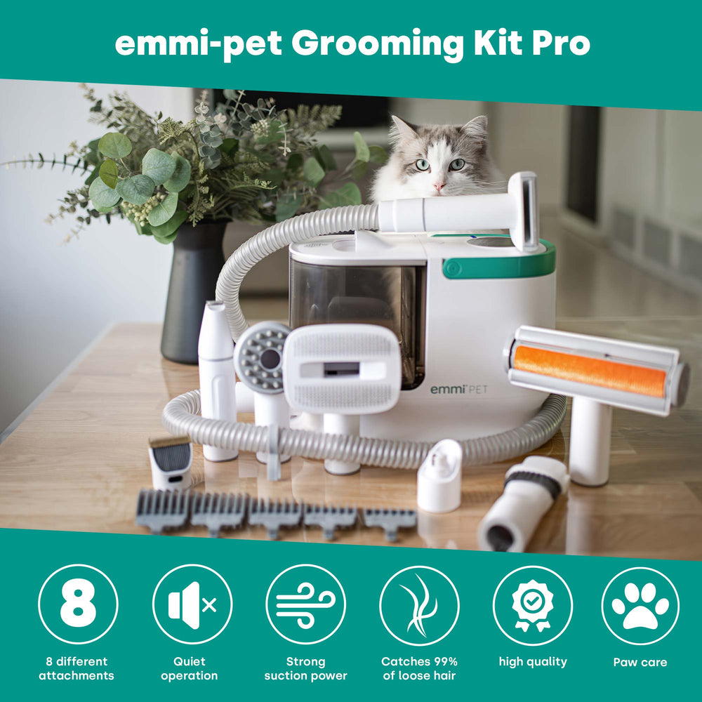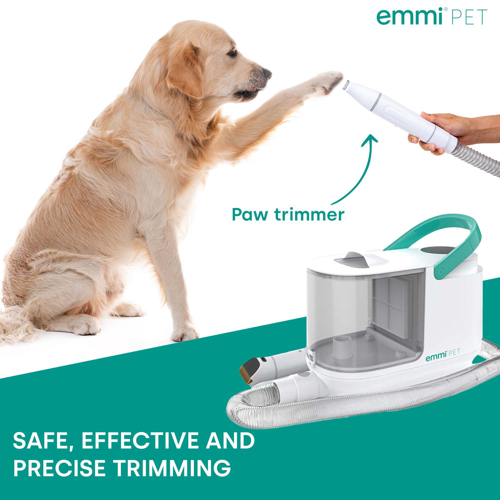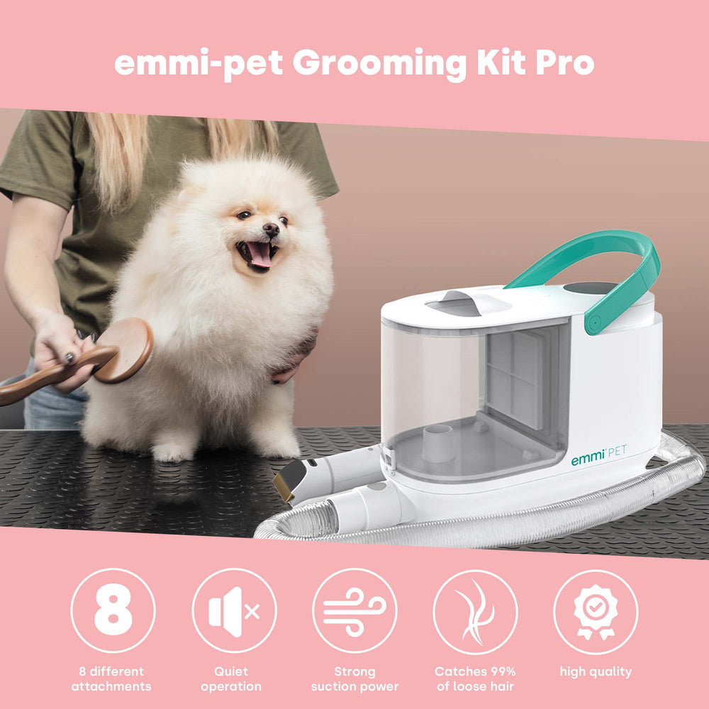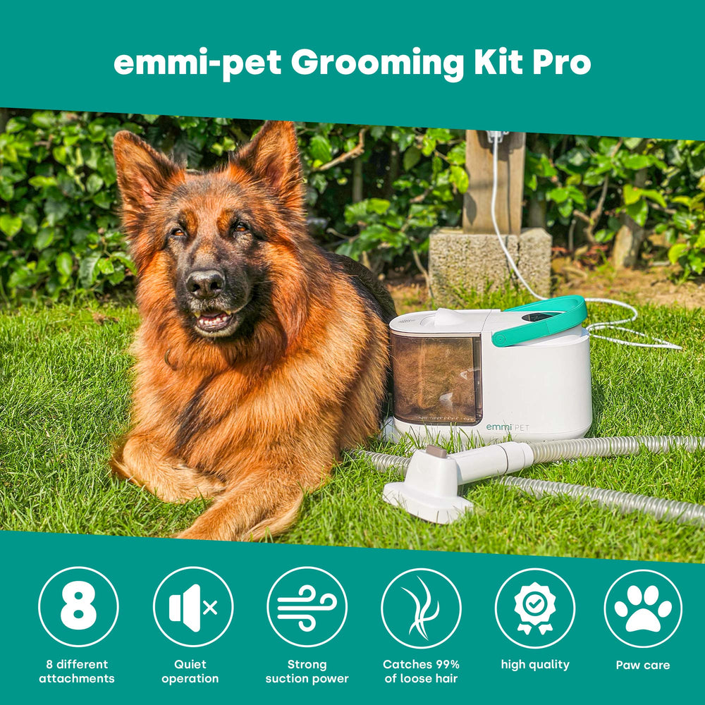 Il kit per la toelettatura include non solo un aspirapolvere, ma anche un tagliacapelli per tosare efficacemente il tuo cane o gatto a casa. Questo rende il kit per la toelettatura Emmi-Pet il miglior aspirapolvere con tagliacapelli per animali domestici rispetto ad altri modelli. Per chi necessita di una cura ancora più completa, la versione Pro offre anche uno speciale tagliaunghie e un rifinitore per zampe, ideali per una cura precisa di zampe e unghie.
