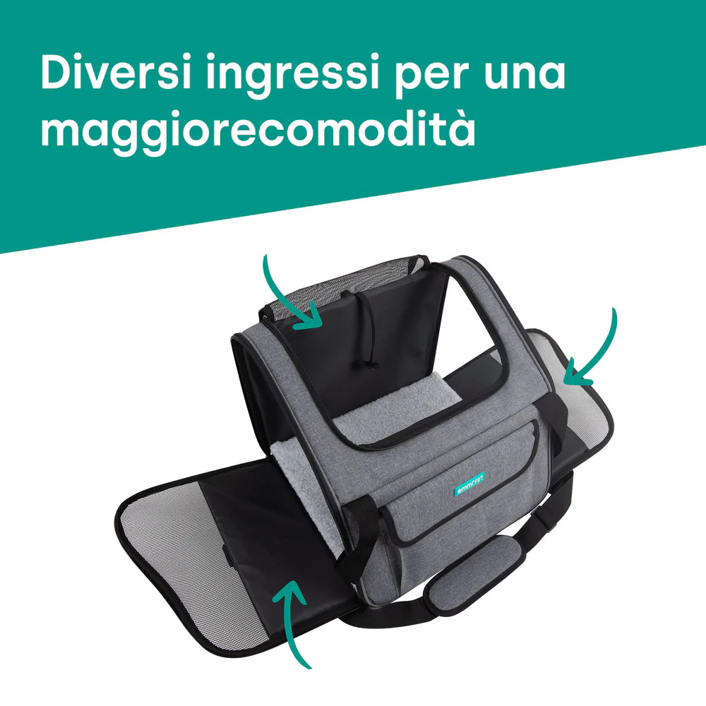 - In grado di viaggiare: Grazie alle sue dimensioni (41,5 x 32 x 30), il box per il trasporto è adatto anche per i viaggi in aereo. Questo può variare a seconda della compagnia aerea.